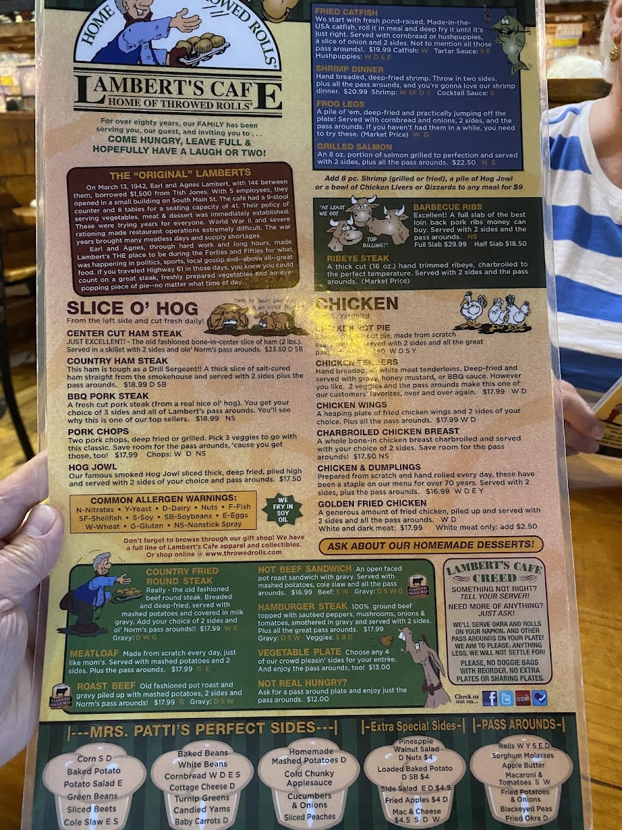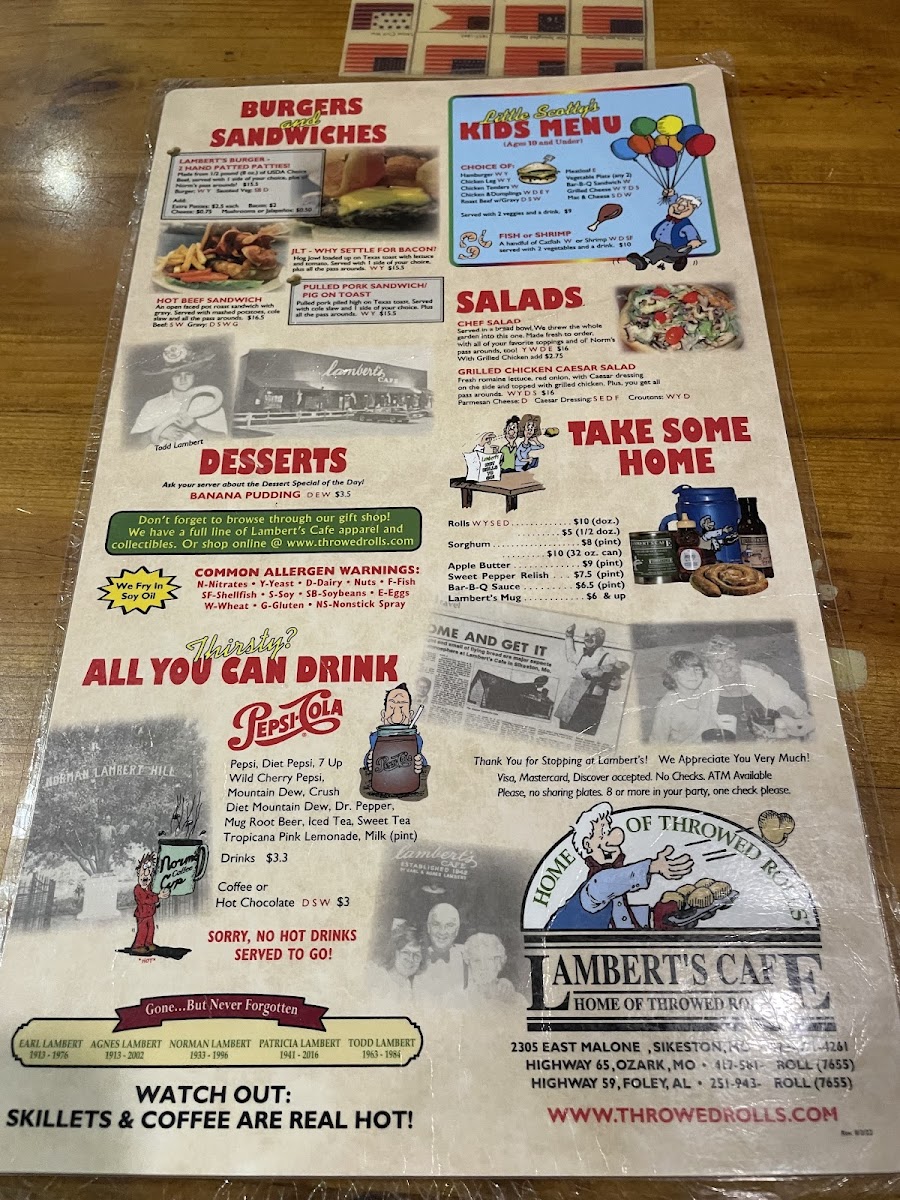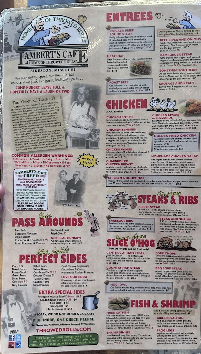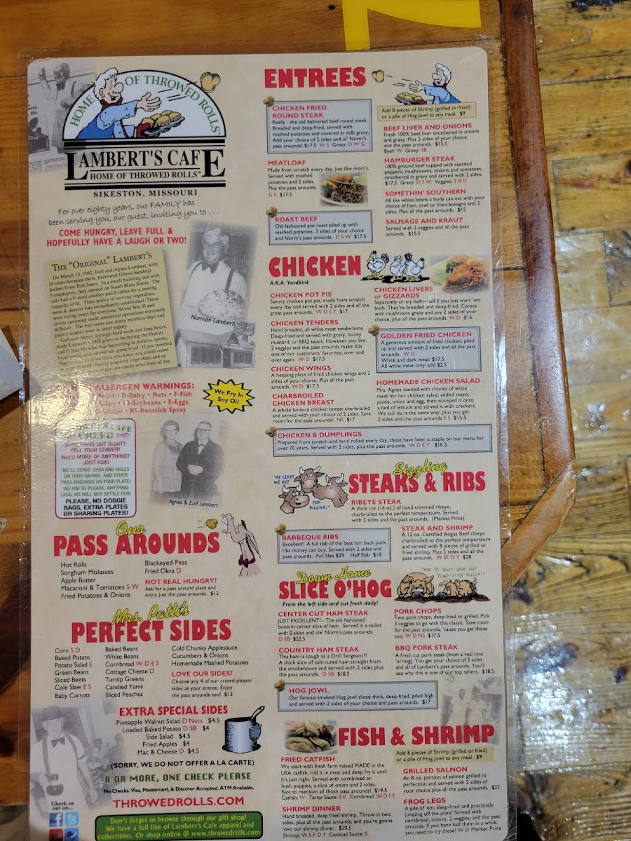 Welcome to Lambert's Cafe in Sikeston, where dining transcends mere meals to become an unforgettable experience. Nestled at 2305 E Malone Ave, this iconic diner is renowned for its lively atmosphere and warm Americana charm. The cafe’s standout feature? The famous "throwed rolls," served hot and buttery, soaring through the air for diners to catch—a delightful twist that keeps guests entertained.